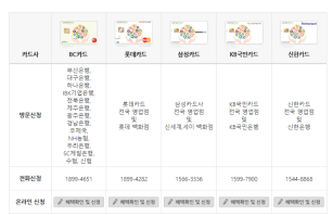 | KB 국민카드 | 1599-7900 | 온라인 재발급 |